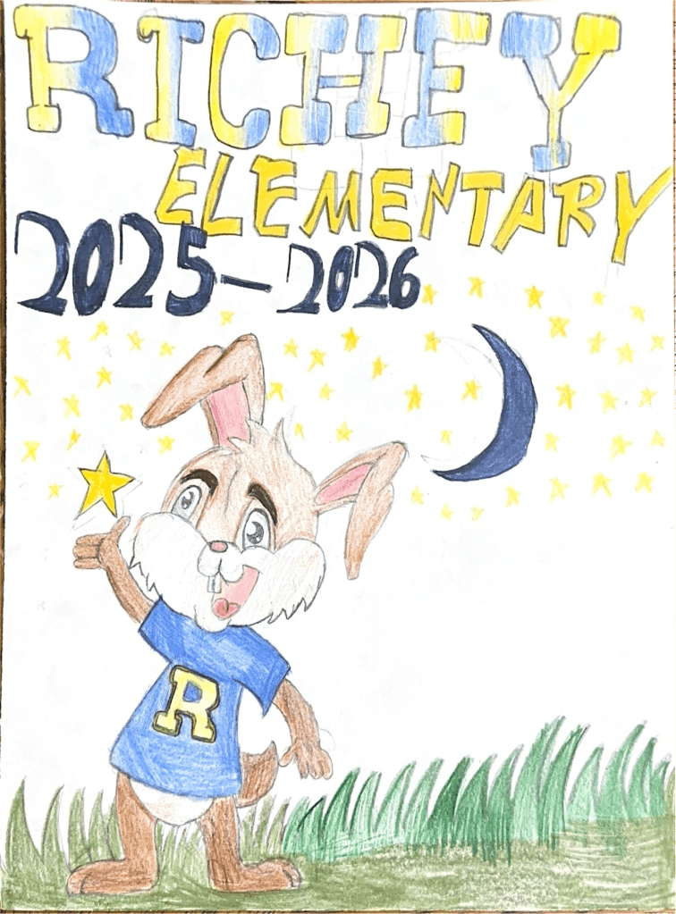 This year, all of our 5th graders at Richey Elementary School designed a cover for our 2025-2026 yearbook in their art class. They all did a wonderful job. The PTO would like to thank Ms. Grosh for helping with this contest. The PTO and Ms. Grosh have selected 5 finalists. Students will be able to vote for the winner during our Skate Night on January 28, 2026.